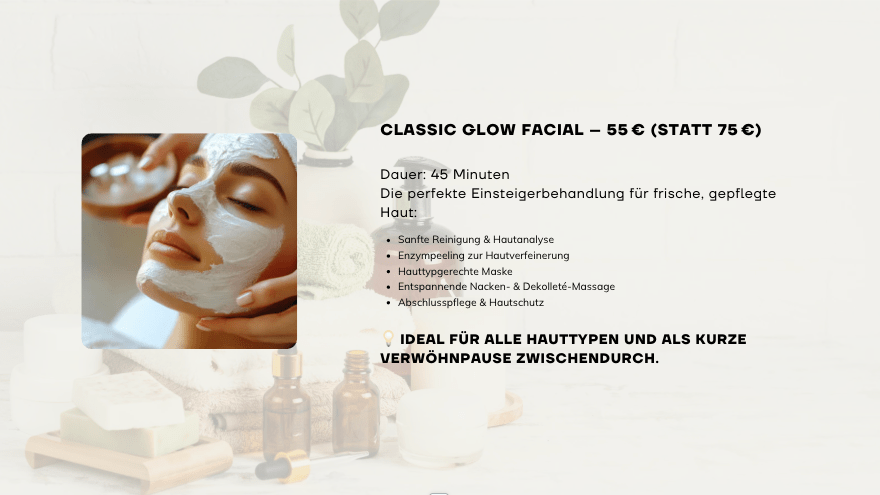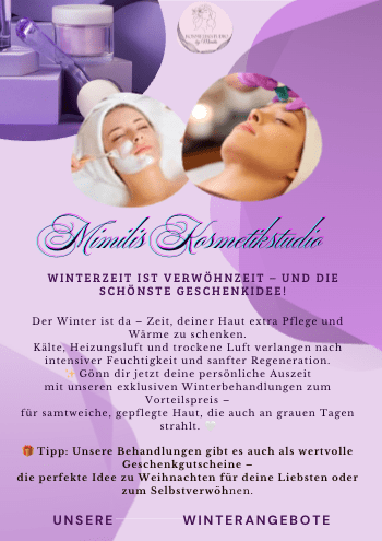 ✨ Gönn dir jetzt deine persönliche Auszeit mit unseren exklusiven Winterbehandlungen zum Vorteilspreis – für samtweiche, gepflegte Haut, die auch an grauen Tagen strahlt. 🤍