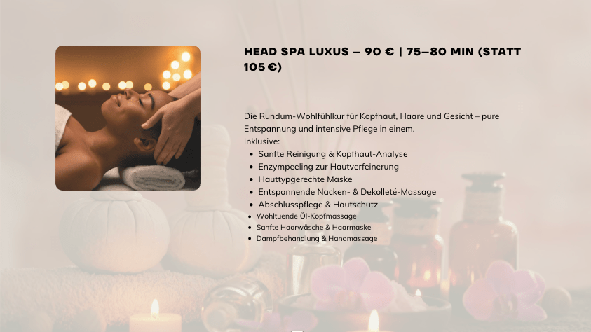 Head Spa Luxus – 100 € | 75–80 Min (statt 105 €)
